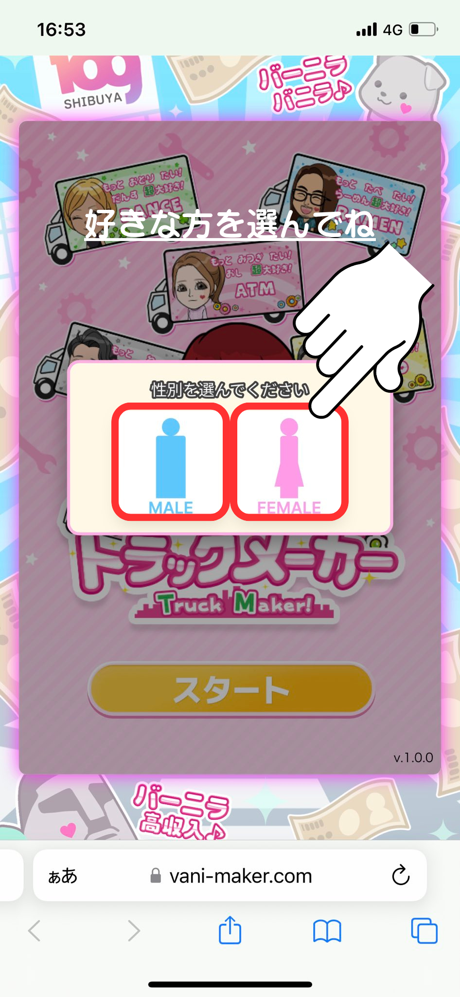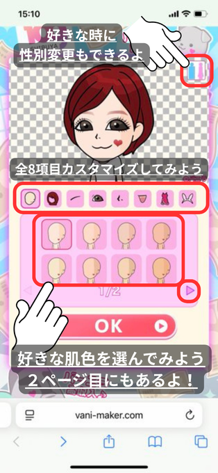 性別を選ぶ(途中で変更も可)